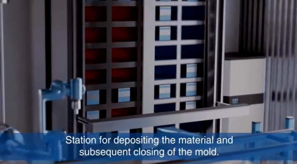 4. The material filling station and the subsequent mold - closing station complete the mold - closing operation.