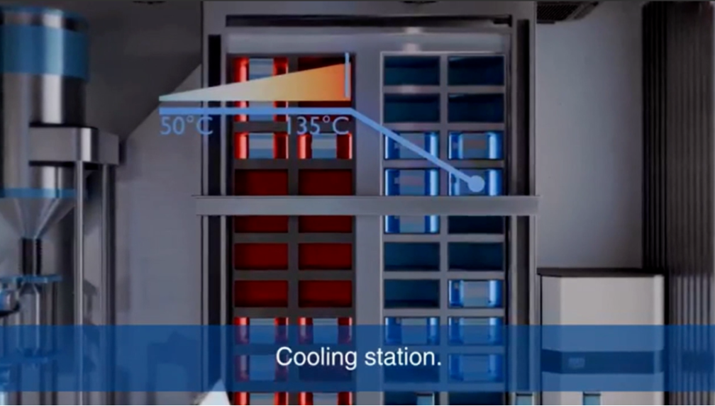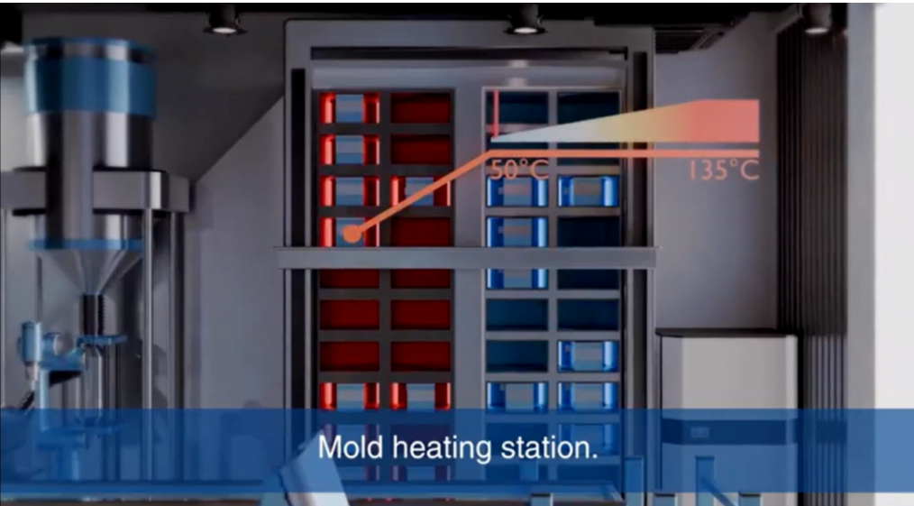 6. After heating, the mold is sent to the cooling station, cooled down to below 50°C, and the molded part is taken out.