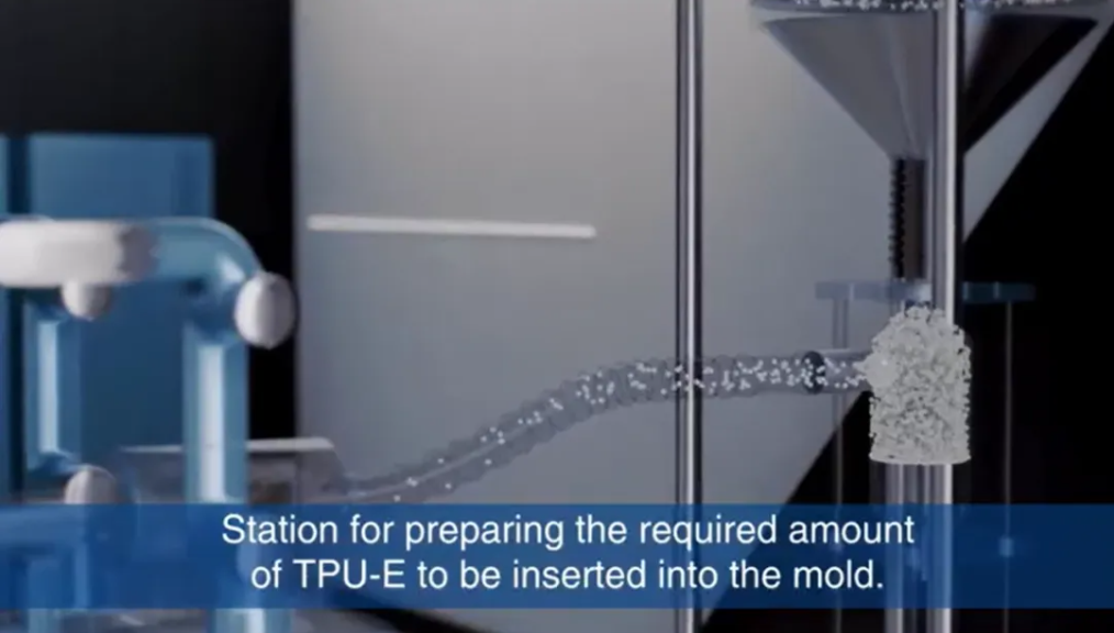 2. At the E - TPU quantitative material preparation and mold filling station, the dry E - TPU granules are filled into the corresponding molds such as shoe sole molds.
