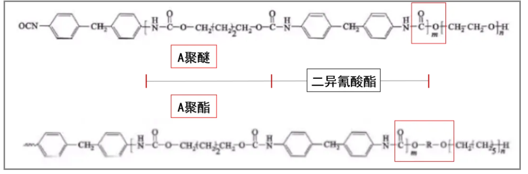 TPU also has soft and hard segments, and the difference between polyether-based TPU and polyester-based TPU lies in the soft segments, which can be seen from the raw materials: