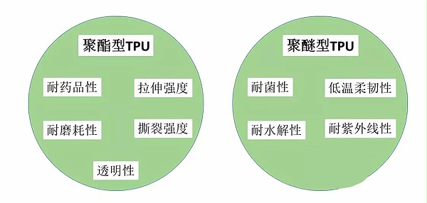 However, common TPUs are divided into two types: polyether-based and polyester-based. Different types of TPU need to be selected according to specific application requirements. For example, if high hydrolysis resistance is required, polyether-based TPU is more suitable than polyester-based TPU.