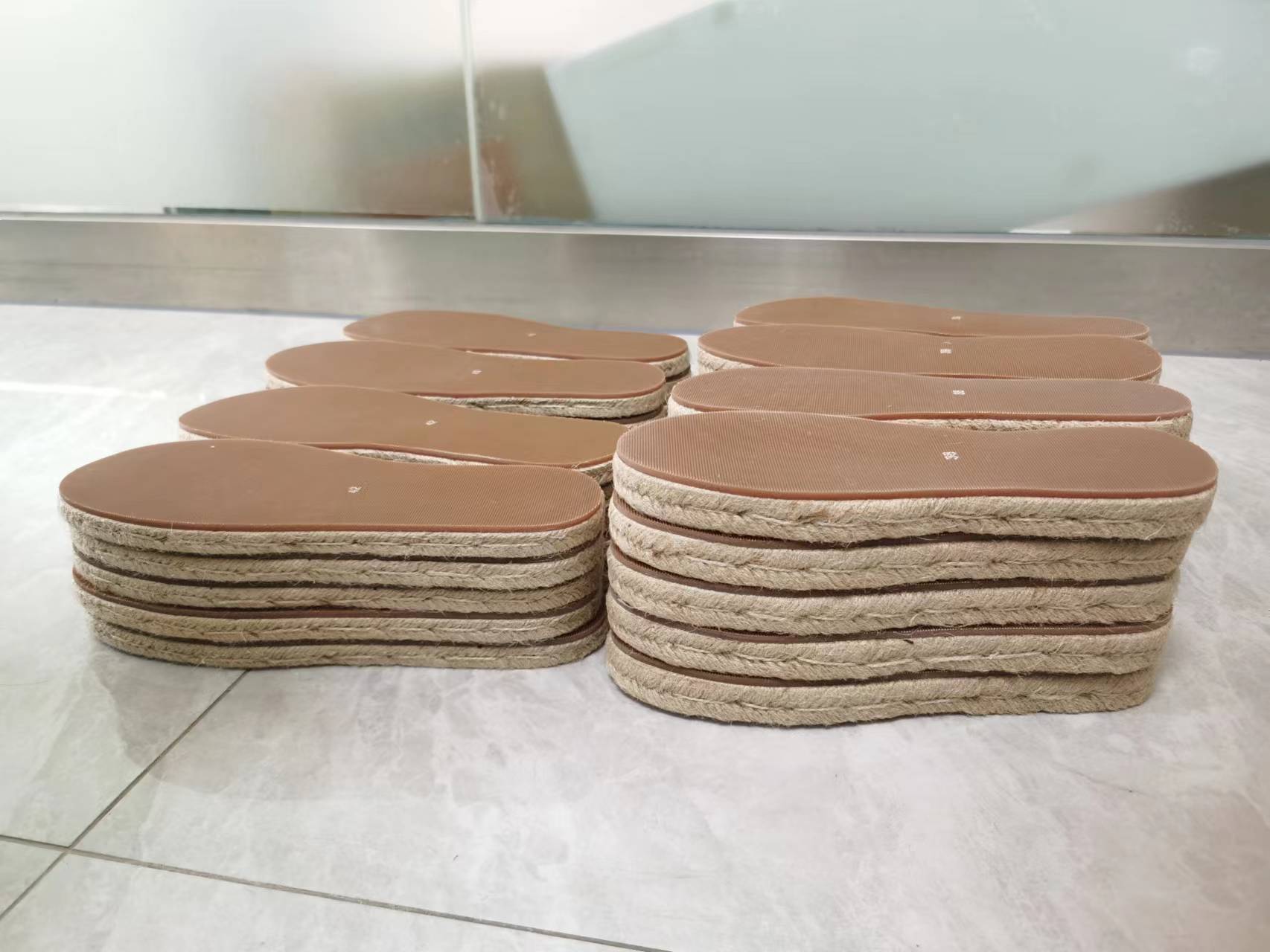Finally, the mold is closed, and after pressing and curing, the hemp rope-edged or integrally molded sole is obtained. This process eliminates the traditional gluing step, resulting in a tighter bond between the hemp rope and the adhesive layer, making it less prone to detachment. It also boasts high production efficiency and allows for adjustments to the sole thickness and shape to meet specific needs. Furthermore, it enables the addition of anti-slip patterns and height-increasing grooves to enhance practicality.