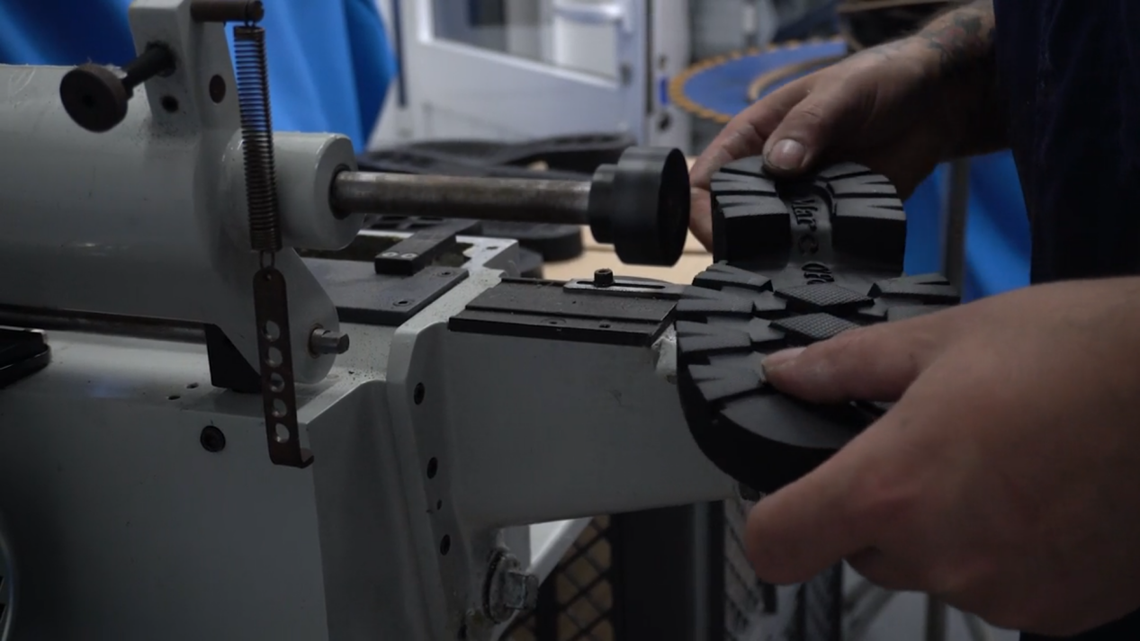 3. Sewing the outer mid - sole: Use the Goodyear welt outer - thread machine to sew the outer mid - sole that is bonded to the welt to fix the welt and the outer mid - sole.