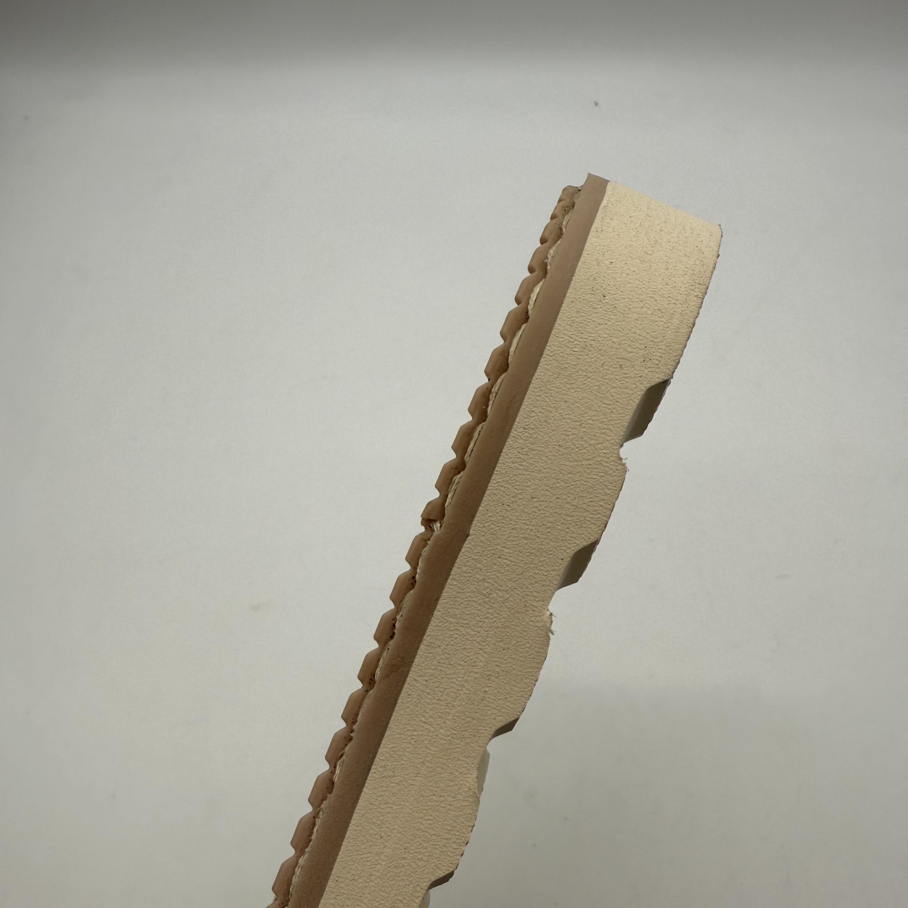 Crepe rubber, a natural rubber-based material with a unique textured structure, is a premium choice for high-end boat shoes. It has a soft, flexible texture that fits the foot perfectly, delivering exceptional comfort and cushioning. The natural textured surface provides reliable traction on wet and dry surfaces, preventing slips effectively. Crepe rubber is highly durable, resisting abrasion and maintaining its performance over years of use. As a natural material, it is eco-friendly, breathable, and avoids the stuffiness common with synthetic materials. It retains softness in different temperatures, never becoming stiff, and adds a retro, premium texture to boat shoes, making it ideal for classic and high-end boat shoe styles.