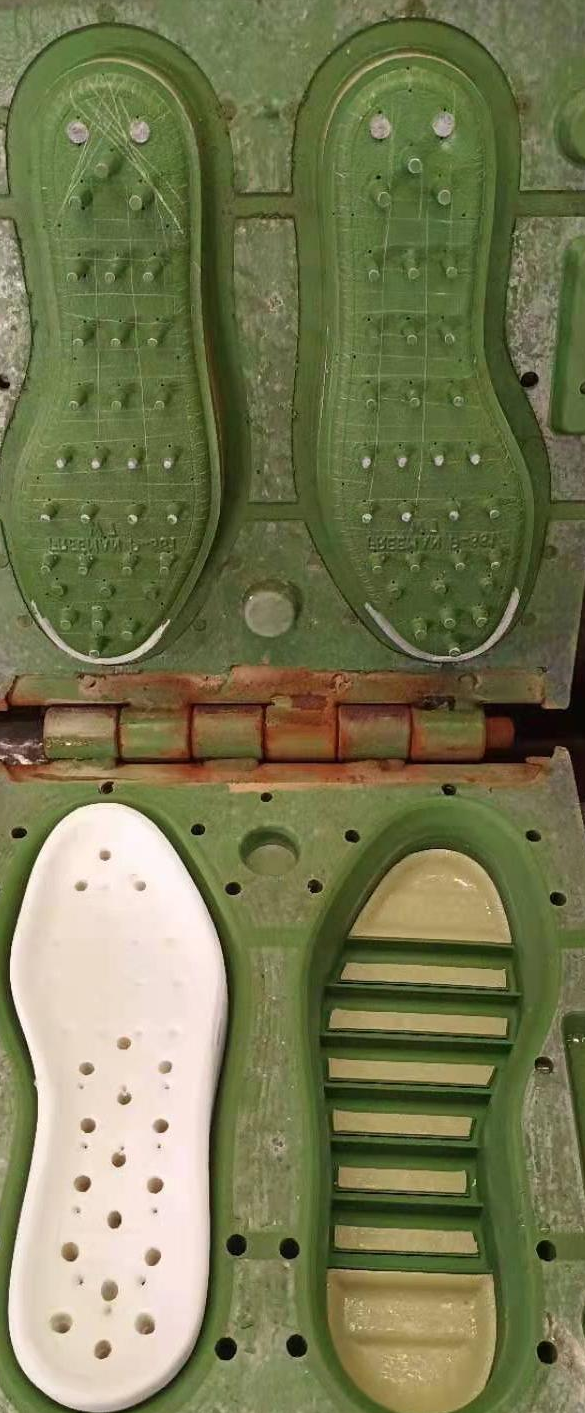 4.Cooling & Demolding: The mold is cooled to solidify the newly formed, bonded shoe sole unit.