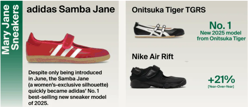 Data from the US sneaker trading platform StockX shows that sneakers with the words "ballerina" or "ballet" in their names saw a sales increase of over 1000% from February to March, and the search volume for these terms in March increased by 264% and 442% year - on - year respectively. The sales growth of Adidas Samba Jane, the Ballerina shoe model co - branded with Bad Bunny, and Nike Air Rift indicates that consumers are looking for fresh designs based on classic thin - soled shoe silhouettes.
