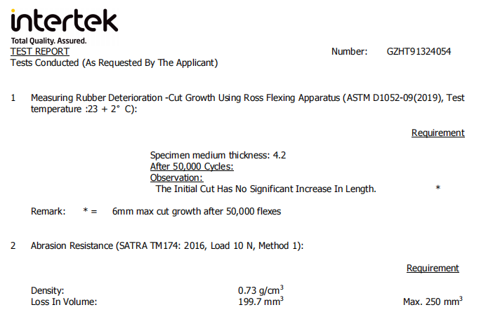 A: Yes. We design structures and select formulas to meet SATRA, ISO, GB standards. Our soles pass slip resistance (dry/wet), flex resistance, low-temperature resistance, abrasion, color fastness and chemical restriction tests (REACH, RoHS). GRS certification adds sustainability compliance for export.